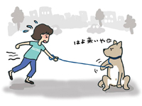 特にストリートでは、クルマ、自転車、通行人等、思わぬサプライズによって犬が突然走り出すこともあり、犬にとっても他人にとっても危険です。常に犬をコントロールできる長さにリードを調節するべきでしょう。